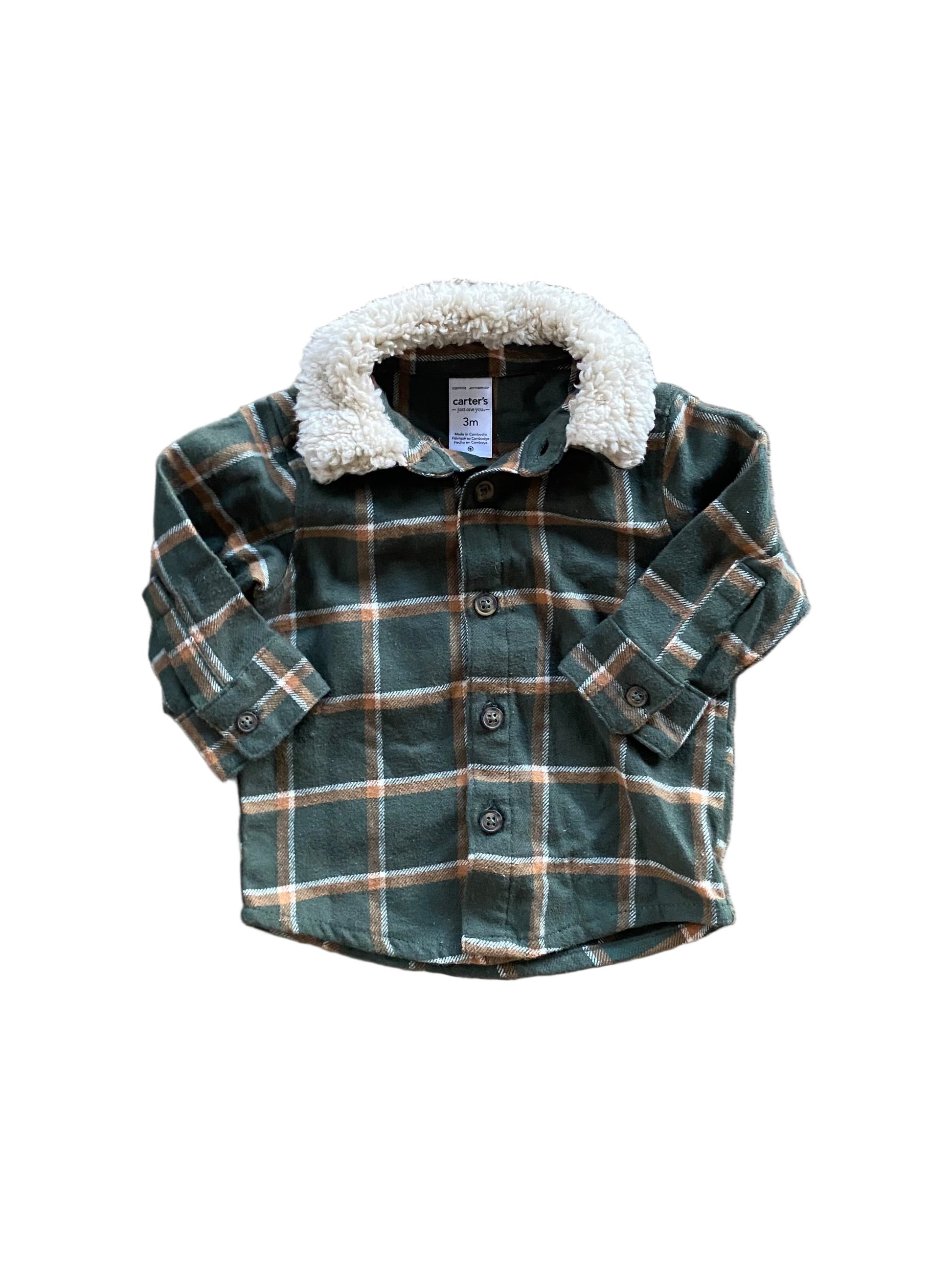 Light weight plaid flannel shacket. Carter’s size 0-3 months.