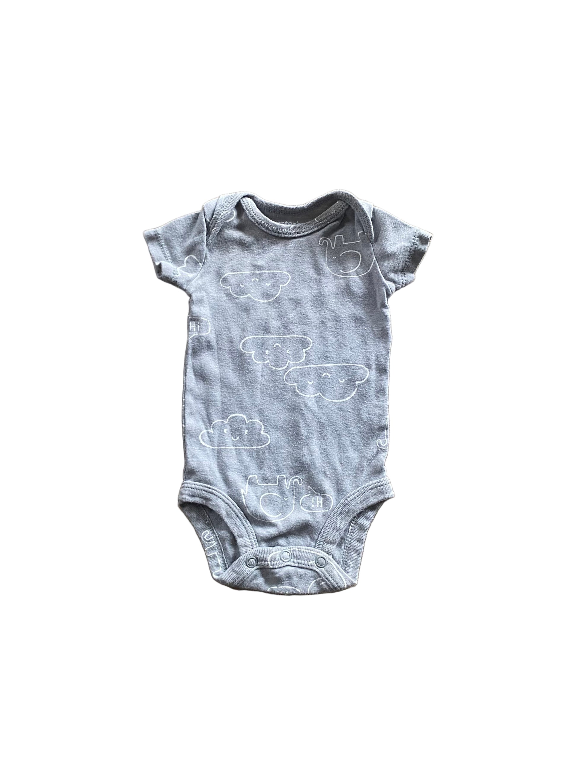 Carters gray onesie with clouds. Size NB.