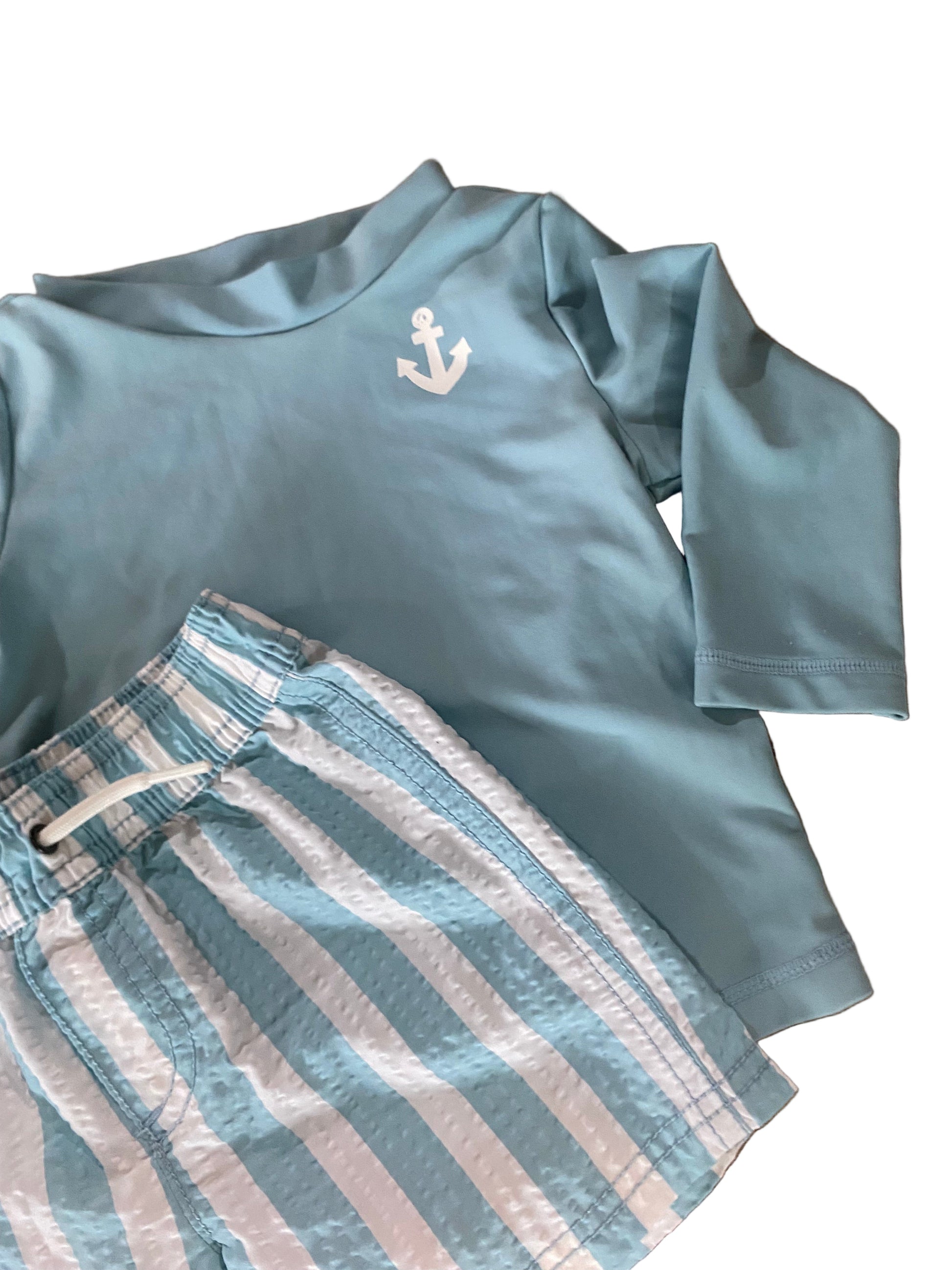 Carter’s rash guard swim shirt with swim shorts. Anchor. Size 18 months.