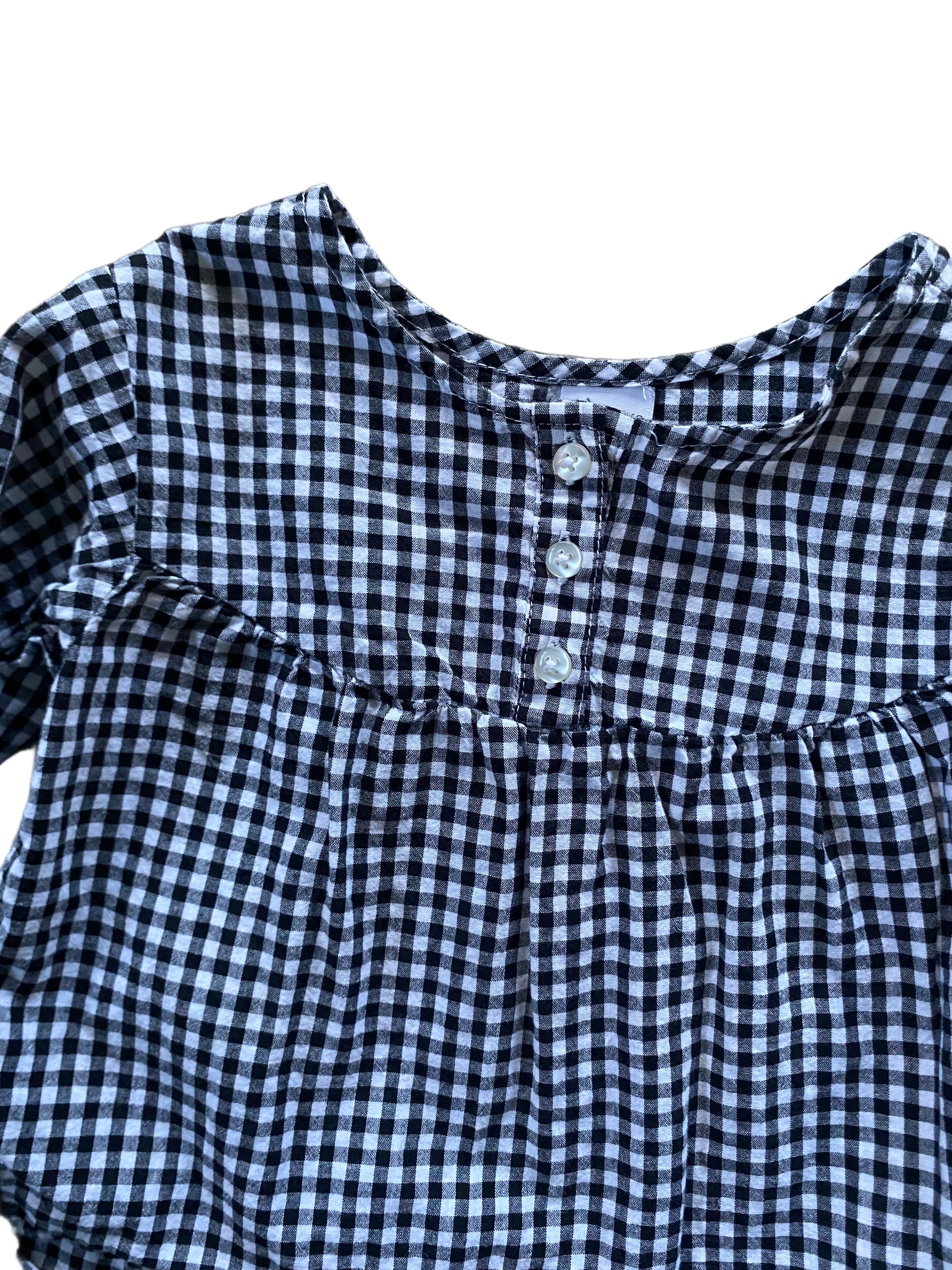 Okie Dokie gingham smocked top with high-low hem, puff sleeves and buttons. Size 24 months.